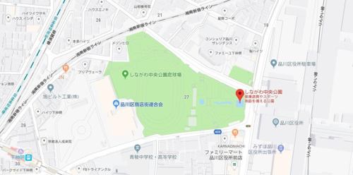 しながわ中央公園は品川区役所の目の前に位置し