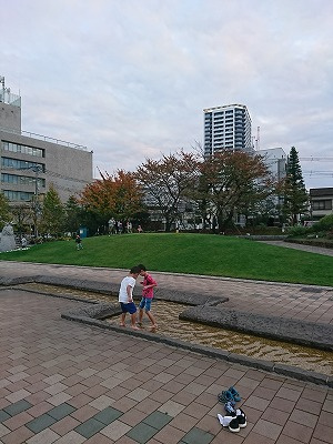噴水や芝生があるエリア、遊具のあるエリアなどがあります。